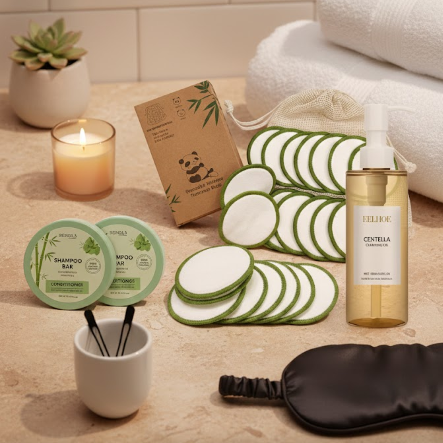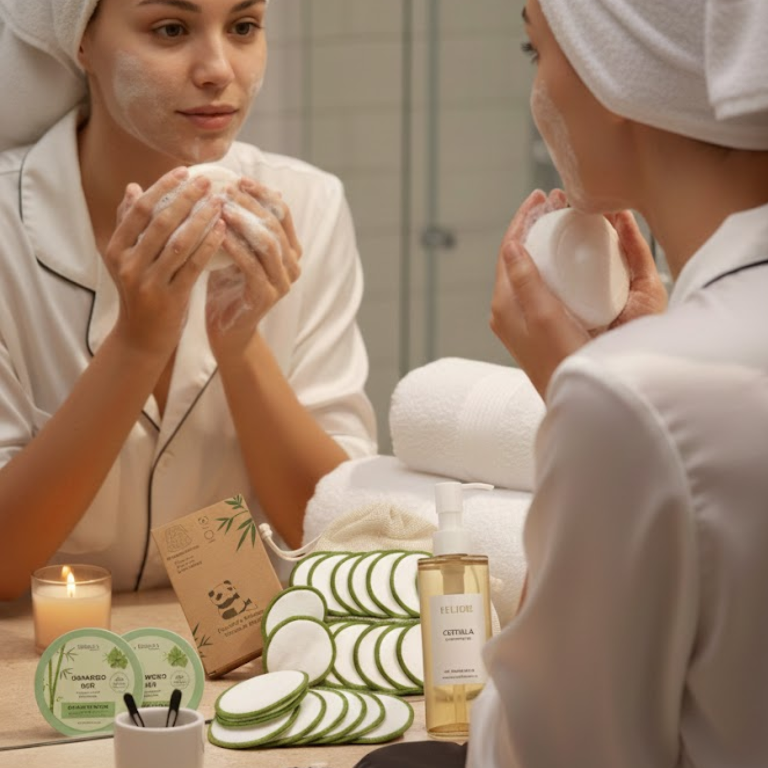 Écrin Démaquillage Infini – Pack 16 Tampons Réutilisables en Bambou